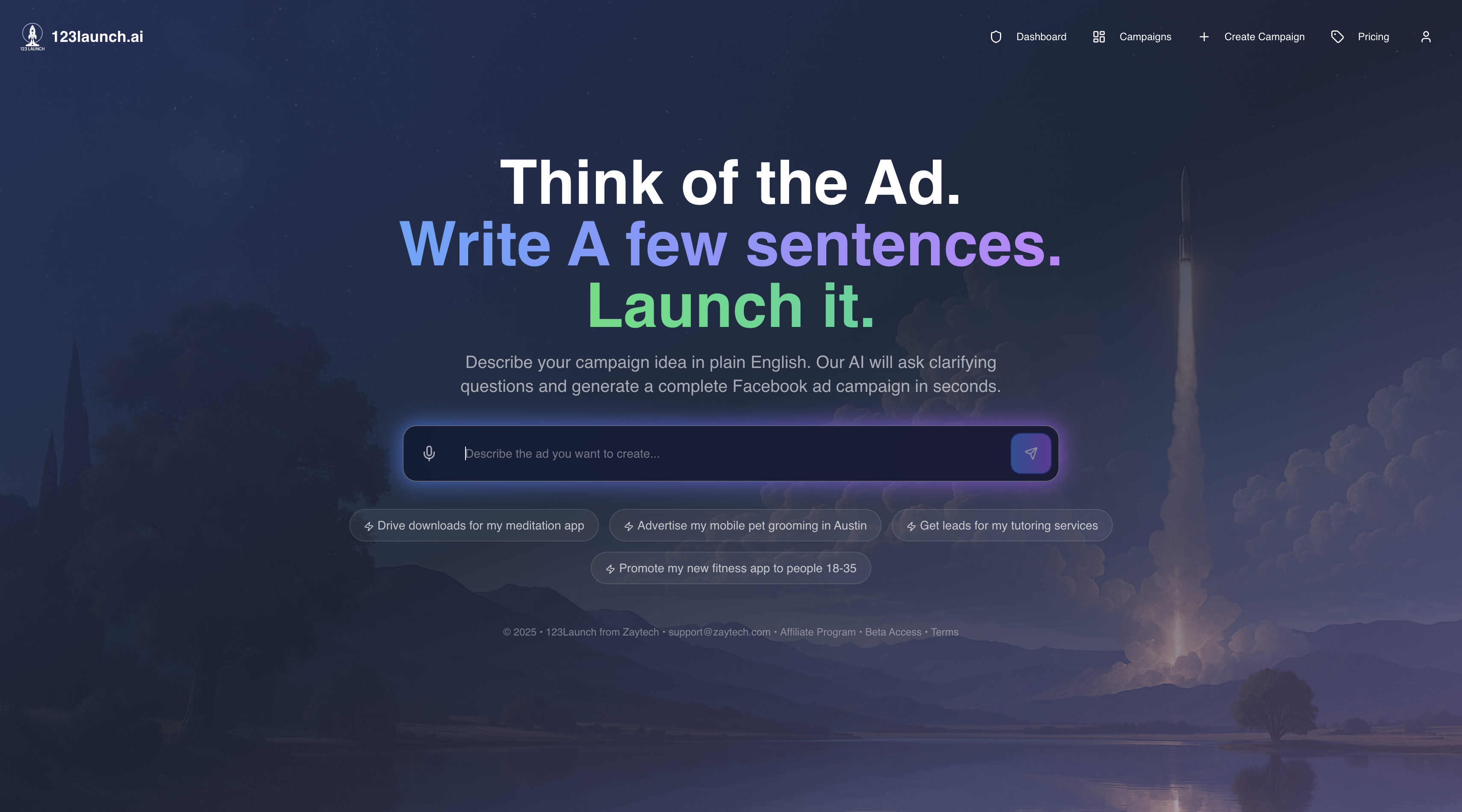 If you are ready to experience the simplest way to advertise on Facebook and Instagram, visit 123launch.ai today. Type your idea, answer a few quick questions, and let AI handle the rest.